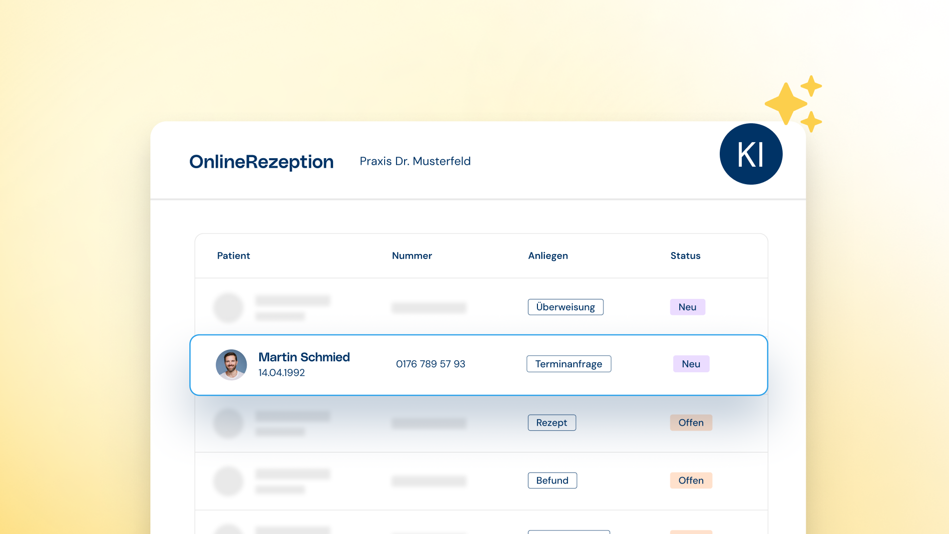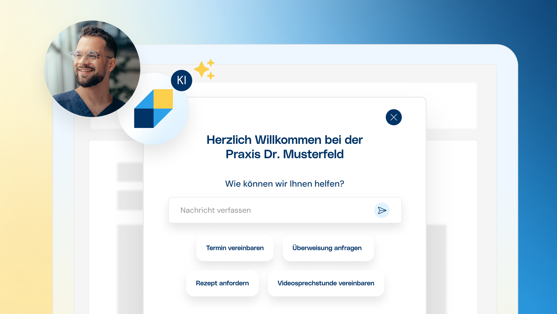 Ob Terminanfrage, Rezeptwunsch oder AU - mit dem integrierten KI-Chatbot für Ihre Praxiswebseite bearbeiten Sie alle Anfragen gebündelt an einem Ort.