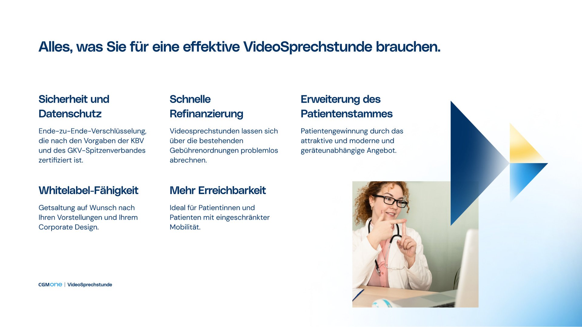 Die CGM one VideoSprechstunde bietet Komfort, Sicherheit und intuitive Nutzung für ortsunabhängige Patientenbetreuung und effiziente Praxisabläufe.