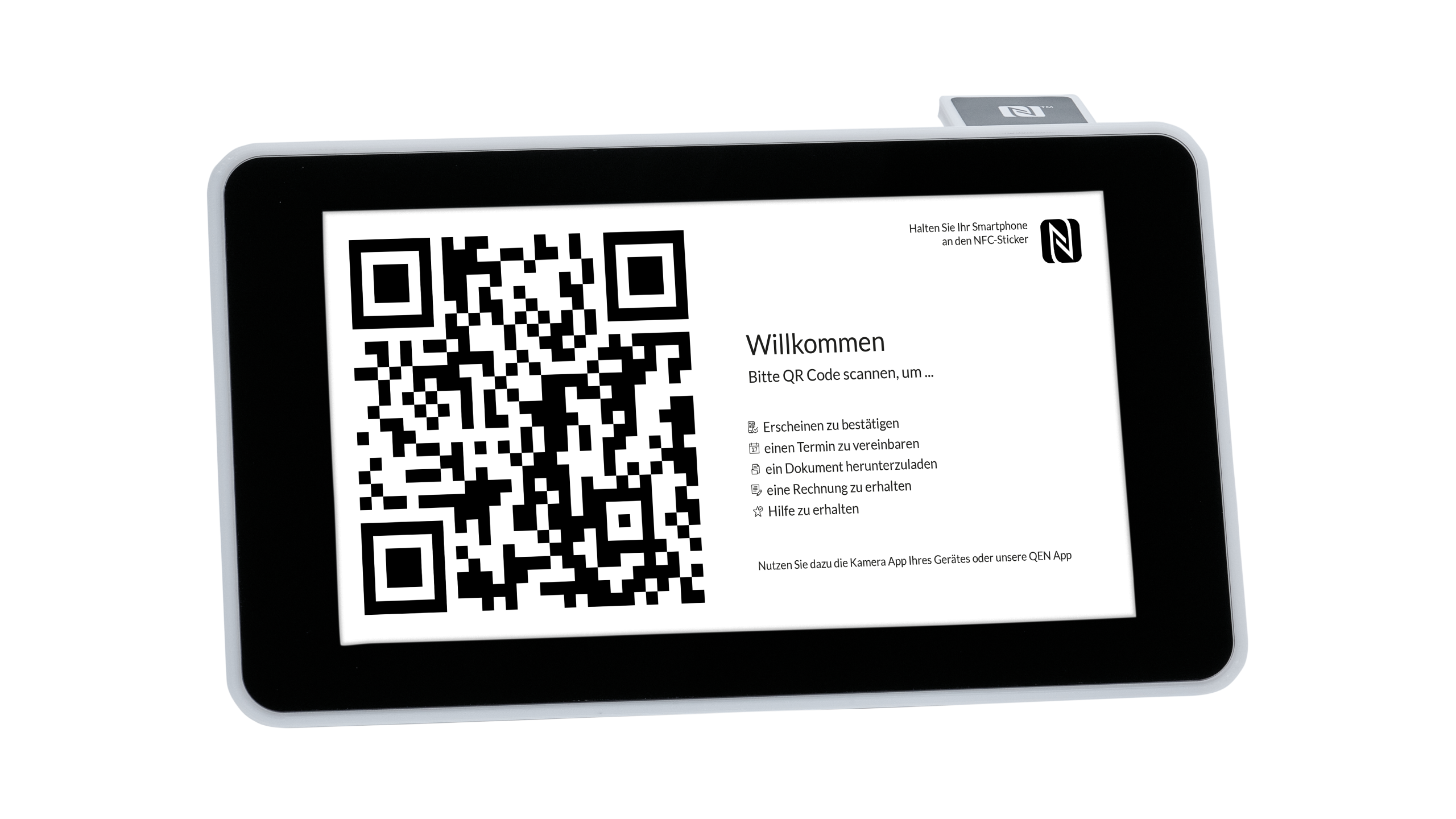 Dr. QEN ist Ihre einfache und schnell einsetzbare Lösung zur kontaktlosen, hygienischen + papierlosen Kommunikation mit Patienten an Ihrer Rezeption.