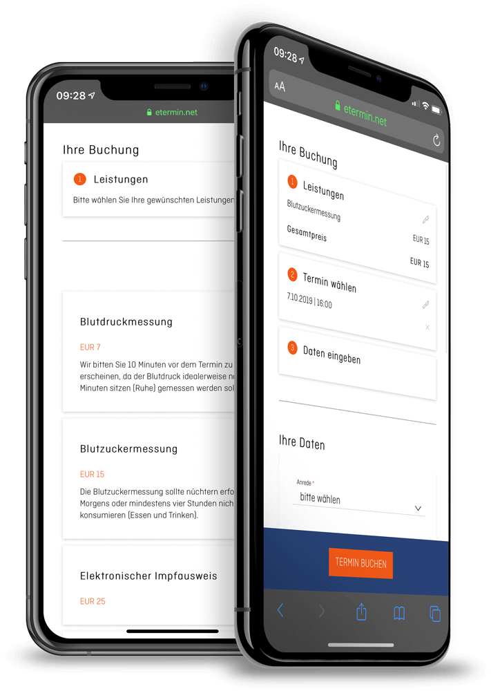 Mit eTermin erhalten Sie eine umfangreiche Lösung für Online Terminbuchung, Patientenmanagement und zielgruppenbasiertes Marketing.