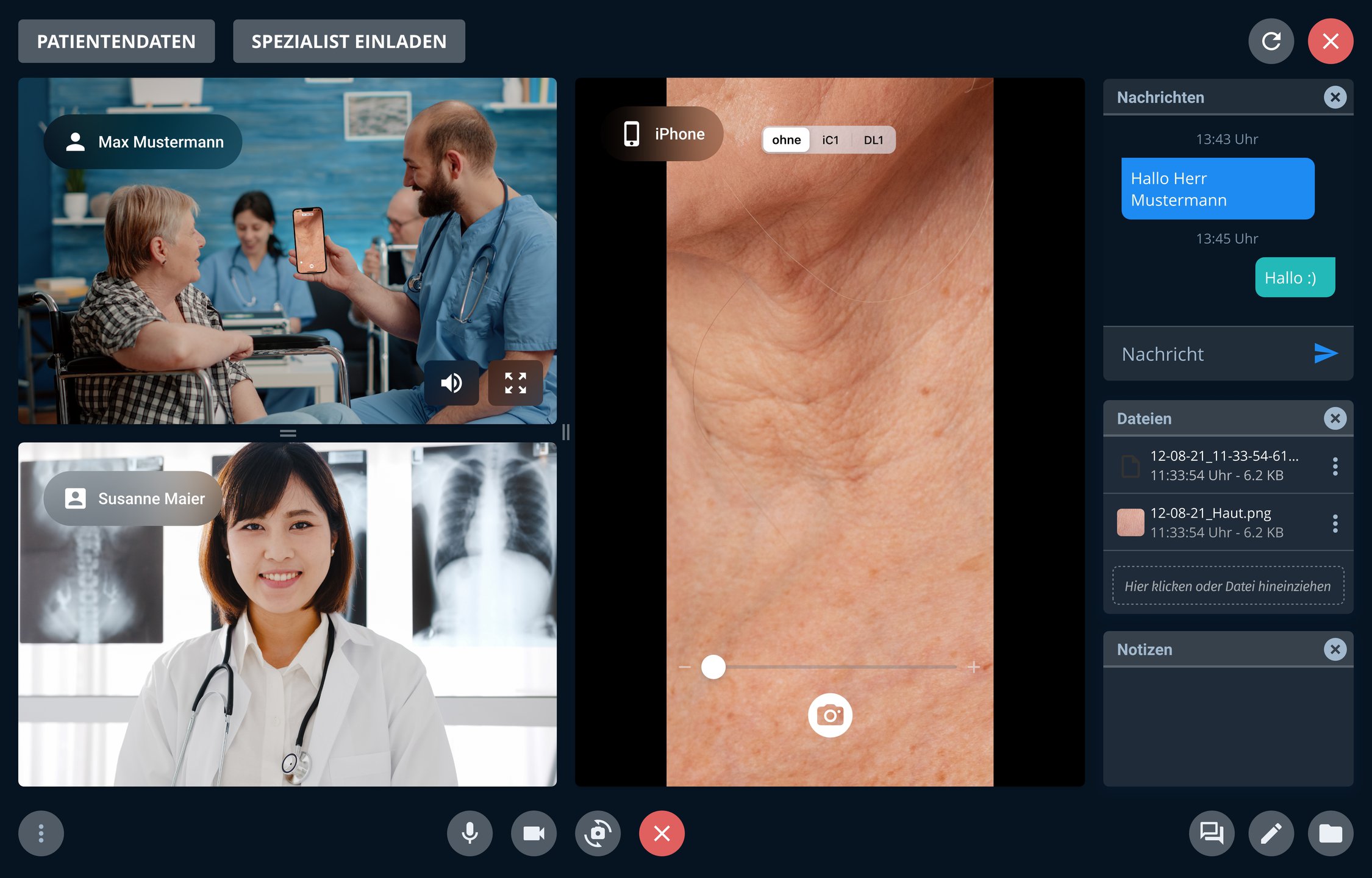 Bei Bedarf können Fachärzte direkt als dritte Partei zugeschalten werden und die Diagnosedaten können konsiliarisch ausgewertet werden. Somit ist eine (fach)ärztliche Versorgung von Patienten unabhängig von Raum und Zeit gewährleistet und z.B. eine medizinische Versorgung unterversorgter Gebiete möglich.