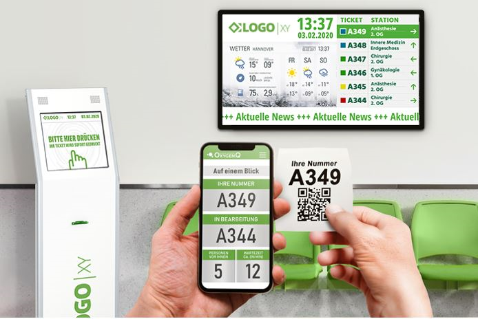 Das browserbasierte Patientenaufrufsystem Oxygen.Q ist speziell auf den Health-Bereich angepasst und steuert das Patientenaufkommen in Arztpraxen, Ärztehäusern, Kliniken und Notaufnahmen.