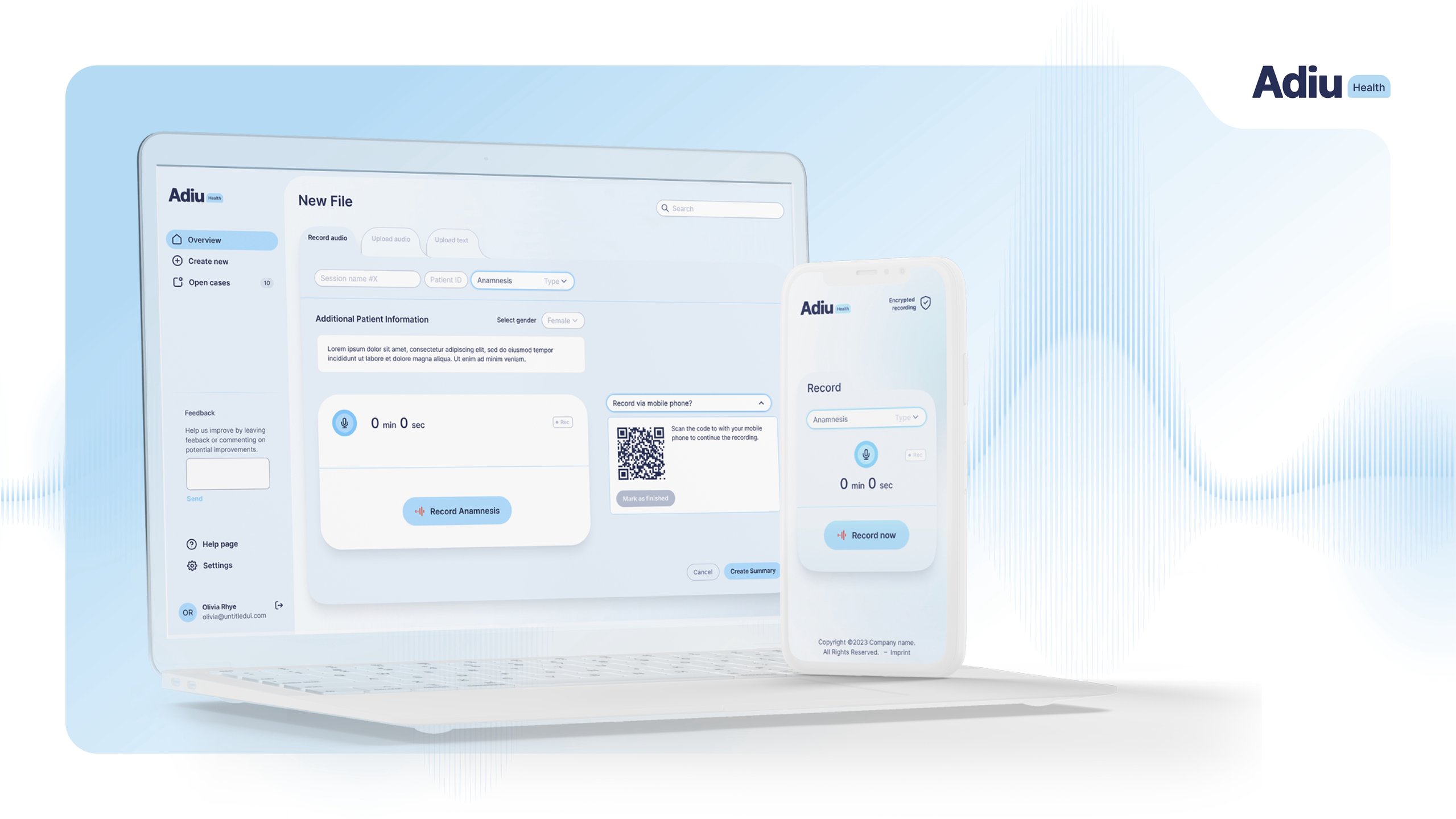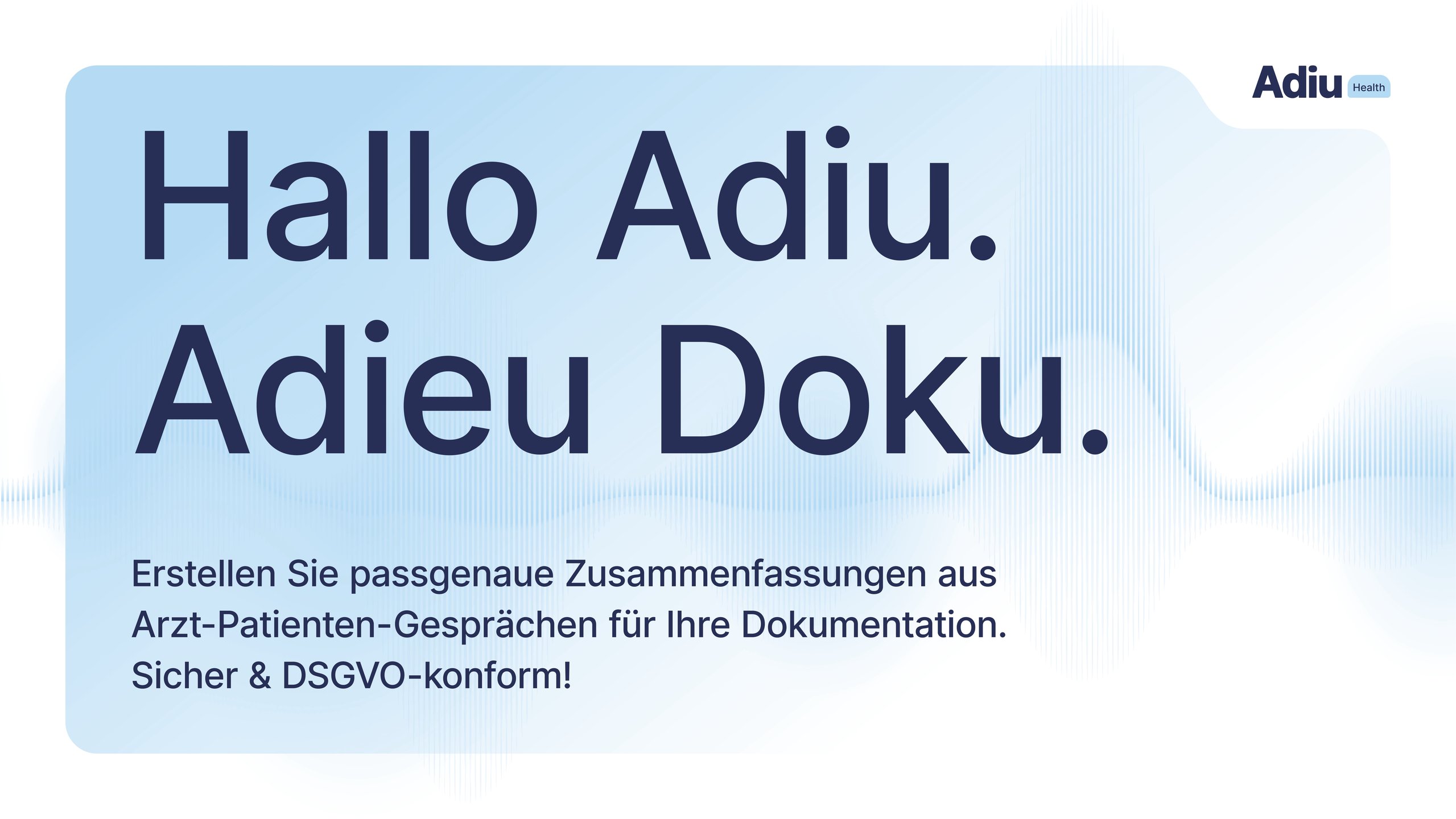 Adiu Health ist eine smarte KI-Lösung, die Ihre Dokumentation vereinfacht. Die Inhalte Ihrer Arzt-Patienten-Gespräche werden automatisch für Ihre Dokumentation zusammengefasst - nach Ihren Vorgaben. Kein lästiges Diktieren oder Tippen mehr notwendig.