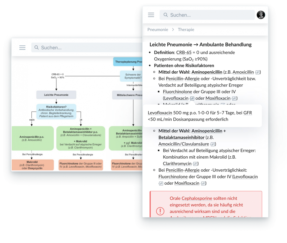 Interdisziplinäre Krankheitsbilder und viele Patient:innen an einem Tag – im Praxisalltag müssen oft wichtige und zeitkritische Entscheidungen getroffen werden. AMBOSS bietet aktuelles, präzises und leitliniengerechtes Wissen für alle Behandlungsentscheidungen.
