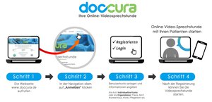 Doccura ermöglicht die Durchführung internetbasierter nationaler und internationaler Videosprechstunden von zuhause oder unterwegs. Hierfür ist lediglich ein internetfähiges Gerät mit Mikrofon und Lautsprecher sowie eine Internetverbindung erforderlich. Die Handhabung ist intuitiv und ohne Vorkenntnisse möglich.