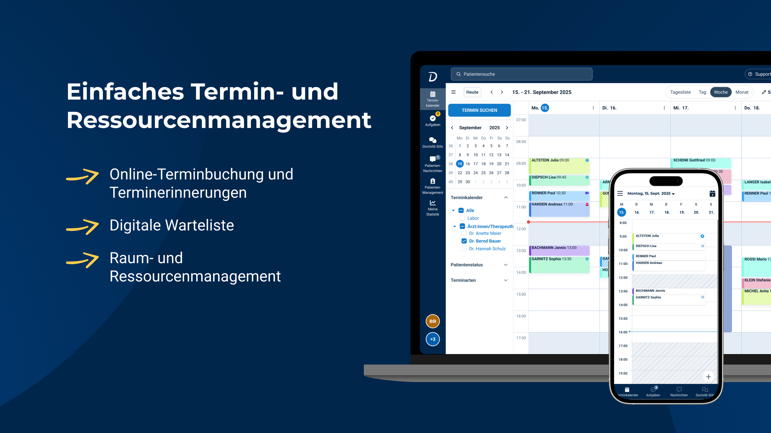 Die Komplettlösung für das Patienten- und Terminmanagement für Praxen, MVZ und Kliniken.